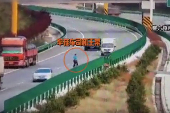 《惊险!卡友竟挪开路障在高速隧道口掉头》