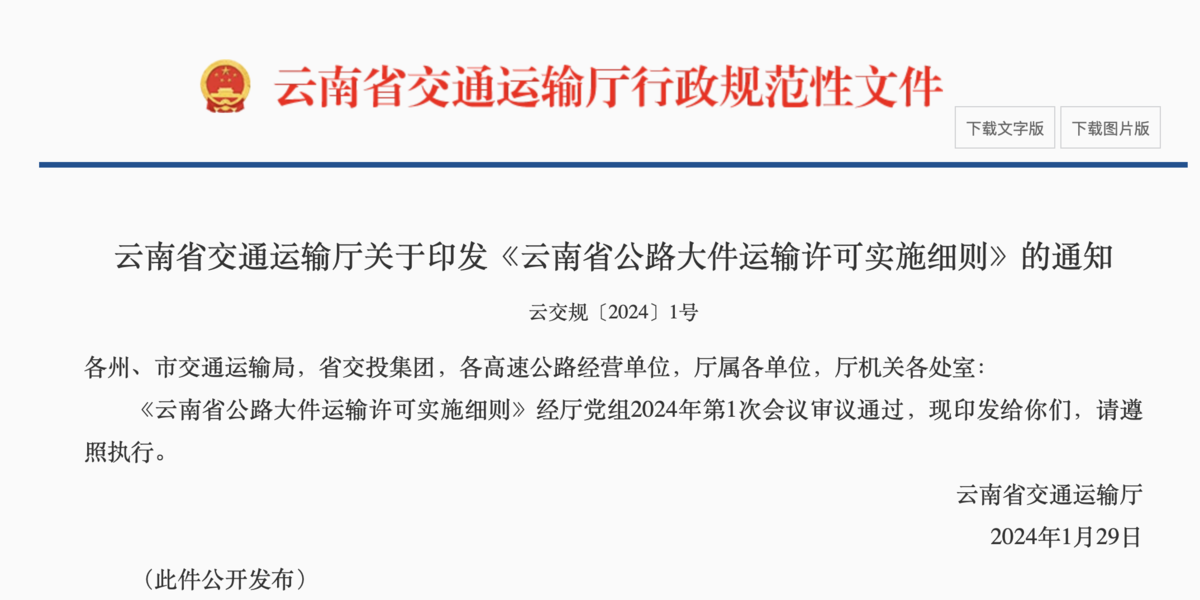 《云南:7种公路大件运输情形将不予许可》