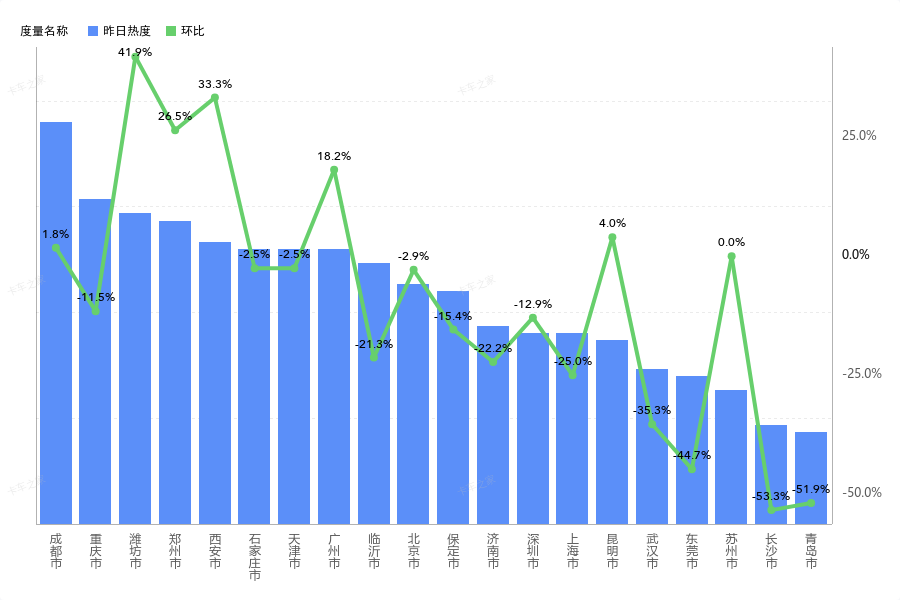 《卡车城市热值关注:潍坊环比涨幅达42%》