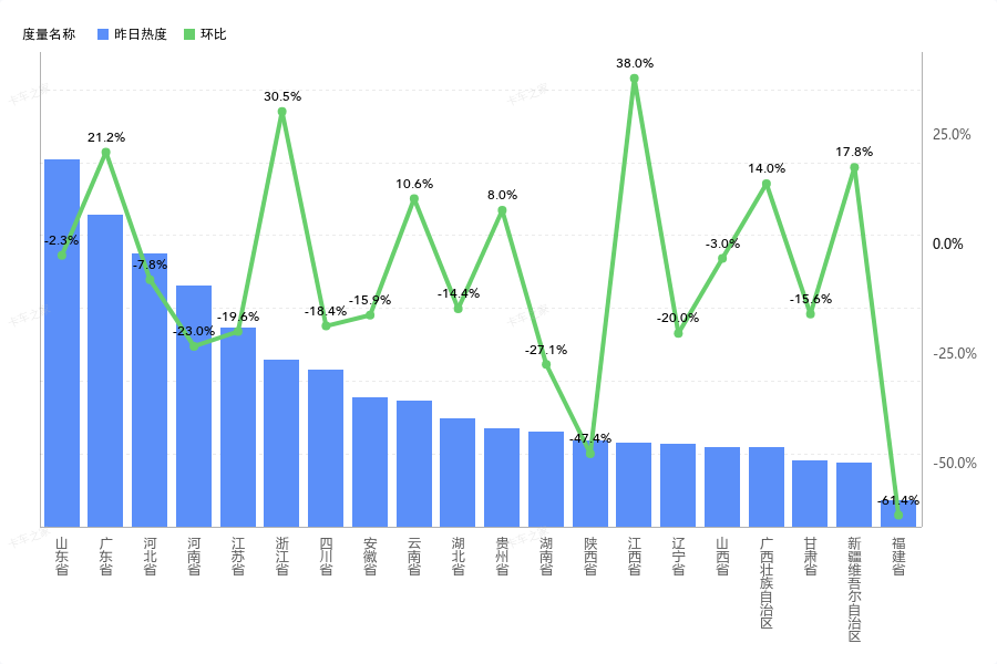 卡车省份热值关注:江西环比涨幅达38%