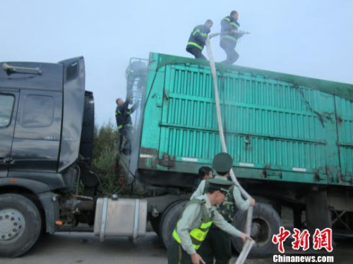 运煤车在行驶中起火 边防官兵成功处置