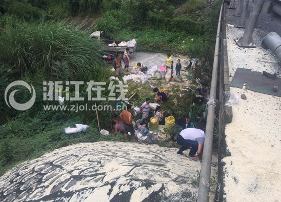 《30吨大米引哄抢 铲车货车扁担整装待发》