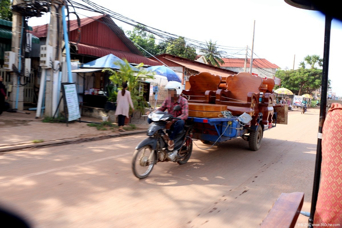 《柬埔寨的摩托车拖个"挂车"就能客货两用》图片列表