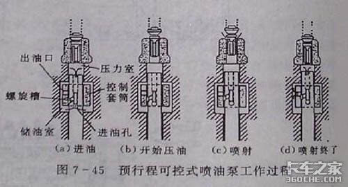 2、是进油口设置在柱塞上燃油的喷射过程与普通喷油泵不同