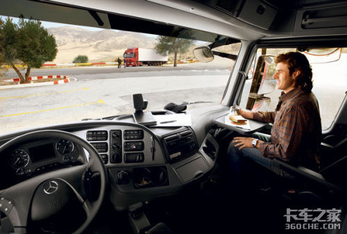 新款Actros既秉承了驾驶室传统血统的“遗传基因”,又融入了现代时尚元素换“新貌”;对前脸、散热器格栅和两侧弯角扰流板等部件进行了优化设计,从而进一步降低风阻系数;对驾驶室的内部布置充分考虑人体工程学原理,为驾驶员创造出更具功能性、空间感和舒适度的工作环境,最大限度地降低驾驶员的疲劳程度,从而使驾驶员的工作效率和安全性得到很大程度的提高。另外,在仪表盘、雨量感应雨刷、光度感应器、低位卧铺等更多实用细节方面的设计也更加人性化。