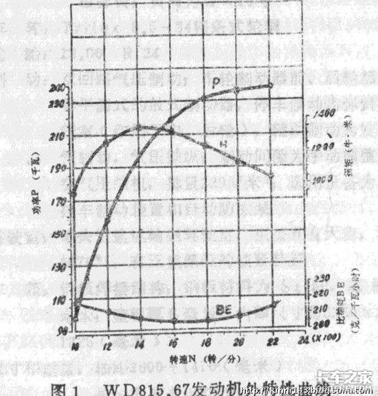 在330马力的V8增压柴油机投入市场后的一年内,斯泰尔发动机研究试验部又研制成功一种基本结构经过多年使用考验的新变型——型号为WD815.67的增压中冷发动机。其空-空气增压中冷系统的结构被设计成与久经考验的直列六缸动机中冷系统相类似。新机型将于1983年深秋成批生产。其特性曲线见图1。