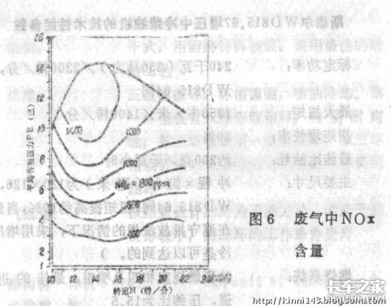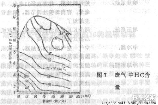 增压中冷发动机显示了比涡轮增压发动机更好的性能。海拔高度每升高一千米功率损失仅增加1%左右。与新的扭矩特性相结合,这种新的发动机也许能被称之为“阿尔卑斯山之王"。应该强调的是,增压中冷系统的另一优点是能降低温度负荷。这种增压中冷发动机由于有可能在较低的转速下工作,所以又显著地提嵩了发动机的寿命。新发动机的废气排放物,如柴油机中_的有害成分NOx(图6)和HC(图7)特别低。
