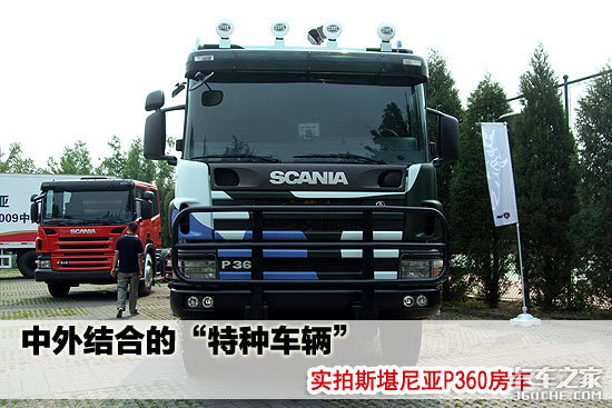 来卡车之家App【卡车之家 原创】在这次斯堪尼亚全国巡展北京香山站中,有四辆卡车参加,其中有一辆非常吸引人。可能是众说纷纭的昂贵价格,可能是与众不同的车身颜色,这款车对前来参加活动的人们总是“很来电”。这就是斯堪尼亚P360房车。