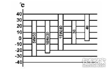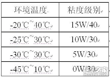 使用15W/40CF-4级柴油机油,用户可以根据本地区的大气温度选择不同粘度级别的CF级润滑油,推荐使用的温度范围如图所示。