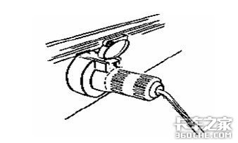 6、先把挂车的电缆线插座盖打开,然后跨接电缆的插头凸出部分对准插座的凹处,使插头完全插进插座里。最后把插座盖合回去,插头便被固定。