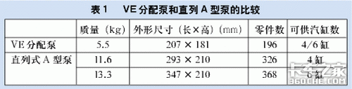 3.高速适应性好。直列式柱塞喷油泵最高转速为2000r/min,而VE分配泵可达到3000r/min。