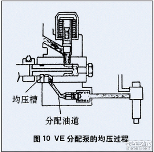 供油结束以后,柱塞已旋转到其均压槽与分配套筒上的出油孔相通的位置上,出油孔与出油阀之间的分配油道通过柱塞上的均压槽和环槽与泵体内腔接通,使各缸这一段分配油道之间的压力在喷射开始前保持一致,从而改善分配泵各缸之间的供油均匀性。
