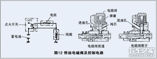 如图12所示,停油电磁阀的电路由点火开关控制: