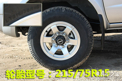 郑州日产NP300采用了6幅全铝合金轮毂,比较时尚。宽大的轮胎保证了行驶的舒适性。轮胎规格为215/75R15。