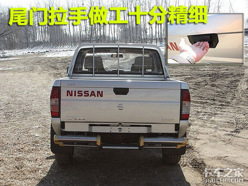 郑州日产NP300的后车箱门为上拉式设计,做工十分精细。但力度很大,使用时比较费力气。后车箱容积很大,宽大的后车箱轻松的装上任何大件货物。
