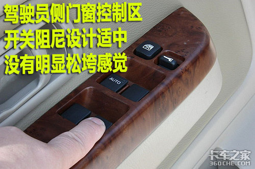 驾驶员一侧集中了全部4个门窗的控制键,使用时发现这些按键的阻力比较合适没有松垮的感觉,左右间隙也很均匀。