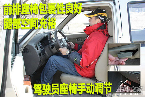郑州日产NP300整车座椅均采用皮革材料,驾驶席座椅前后、靠背角度为手动调节。各按钮四周做工较细致,但感觉比较松垮。