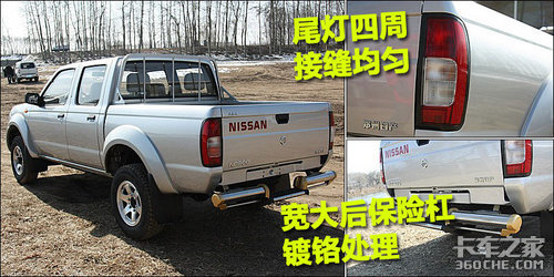 郑州日产NP300的车尾部分与车头部分相同,尾灯及后行李箱的接缝同样十分均匀。大尺寸镀铬后保险杠为其增加了几分霸气。