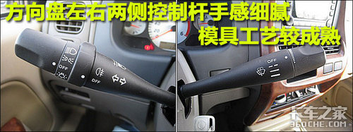方向盘左右两侧控制杆为软橡胶包裹手感细腻,明显具有大厂风范。并且旋钮设计能够满足手指粗大驾驶者的使用及调节。