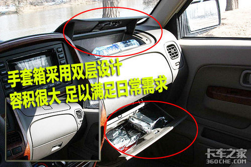 郑州日产NP300的手套箱无阻尼设计,在打开手套箱后会因重力而自由下落,手套箱采用双层设计,内部空间很大,能够存放不少东西。