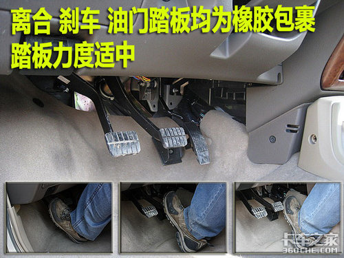 郑州日产NP300的离合、油门和刹车踏板均为橡胶包裹,面积十分大,刹车踏板行程较短,并且很灵敏。