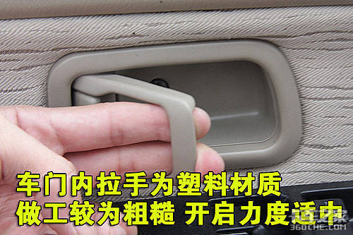车门内侧拉手采用塑料材质,质感较差,开启力度适中。