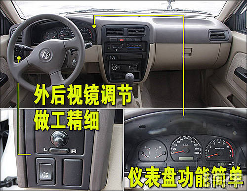 东风锐骐整车座椅均采用织物的材料,驾驶席座椅前后、靠背角度为手动调节。各按钮四周做工较细致,但感觉比较松垮。