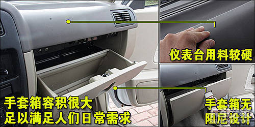 东风锐骐的手套箱无阻尼设计,在打开手套箱后会因重力而自由下落,手套箱内部空间很大,能够存放不少东西。