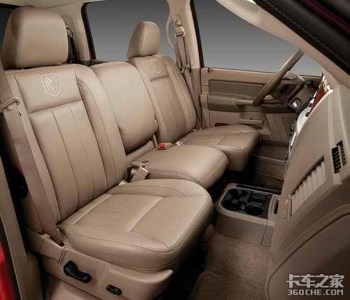 全新的2006道奇Ram Mega Cab的145.2立方英尺车舱空间特点是业界最具创新的座椅以及存贮空间布局,包括皮卡上第一个可斜倚的后座椅,能往后倾斜22至37度。后座的乘客能拥有同级中最多的44.2英寸的腿部空间,后座可以60/40折叠,放平以及向前移动,能提供最大的空间利用活动度。