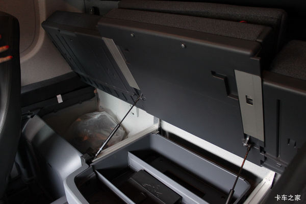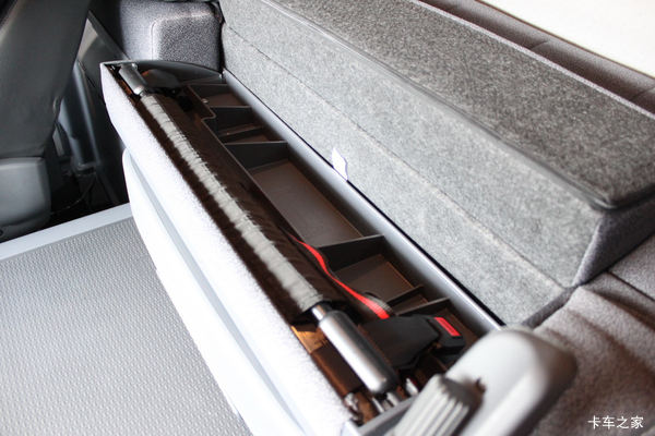 下铺可以掀开,液压支撑,掀开很容易。副驾座位后面是个大的行李箱,中部是那个可以抽出来的抽屉,主驾后部是刚才介绍过的工具箱。