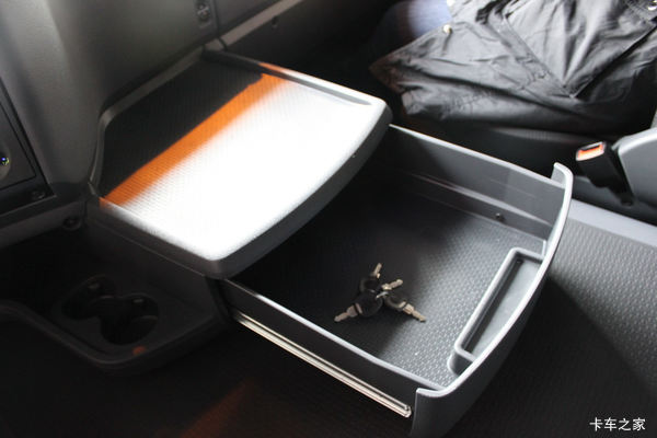 仪表台旁边的托盘,以及托盘下面抽出的抽屉