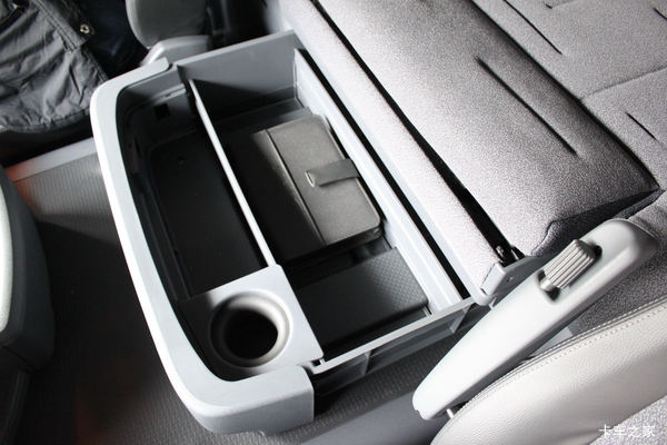 下铺中间可以向前抽出一个抽屉,内有杯架和储物格,本车的行车手册也在这里放着