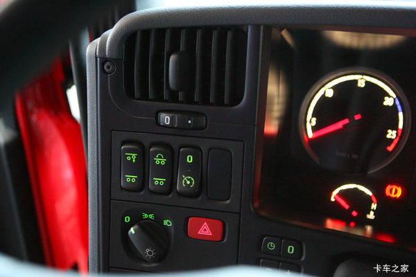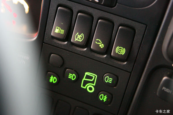 上面三个分别是:提升桥控制、载荷转移、定速巡航总开关,下面旋钮为灯光控制,红色为双闪灯。