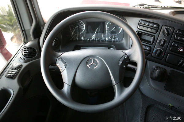 Actros的多功能方向盘可控制音响、手机和车况及保养信息系统等。驾驶员在执行这些操作的时候手可以不用离开方向盘,也使得行车安全性能得到提升。