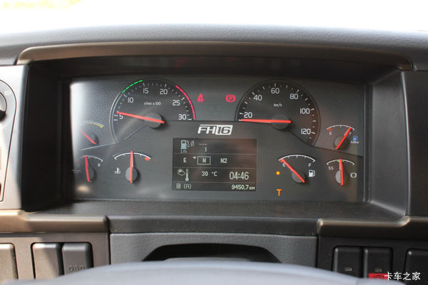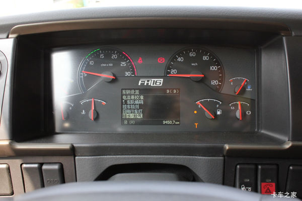 沃尔沃驾驶室采用半环绕式仪表盘,所有操纵键合理布局,触手可及,符合人机工程学原理,接下来我们就看看都有哪些控制按钮。
