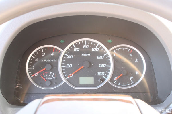 组合仪表选择了三个环设计,电子里程表、迈表、转速表、气压表……都体现在组合仪表上。160km/h的迈表相当唬人,就算空车相信也跑不到140km/h,所以160km/h这个数值,大家过过眼瘾就好了,不可轻易尝试。