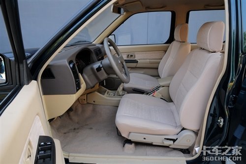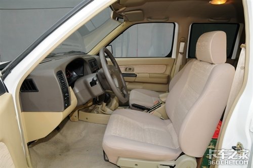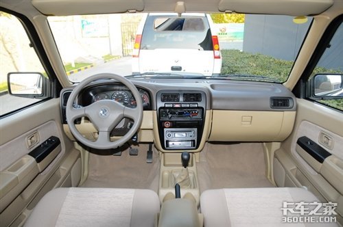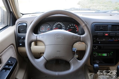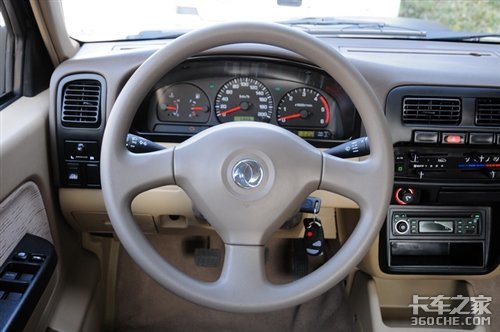两款锐骐车的内饰基本一样,同样的仪表盘、同样的中控台、同样的色调甚至同样的收音机;所不同的是商用版的锐骐方向盘是四幅款式的,方向盘上居然还有着日产的LOGO图案,在它的内部装有单气囊;而皮卡版的锐骐方向盘是三幅形状的,这是因为国家并没有要求载货卡车安装气囊,而作为一部载货车,它的成本投入与产出比是相当重要的,所以气囊是能省则省了;如果你认为少了一个气囊就是不安全的话,那么我们的忠告是:遵守交通规则和记好安全带是最重要的。
