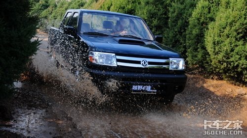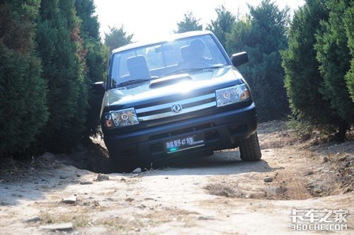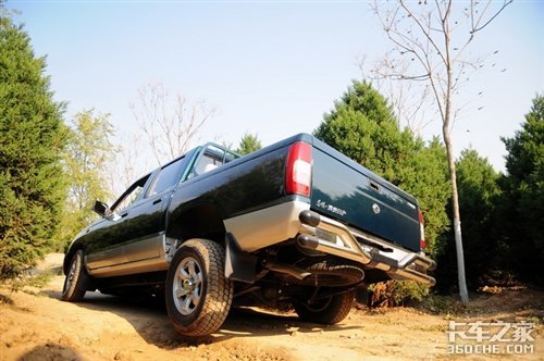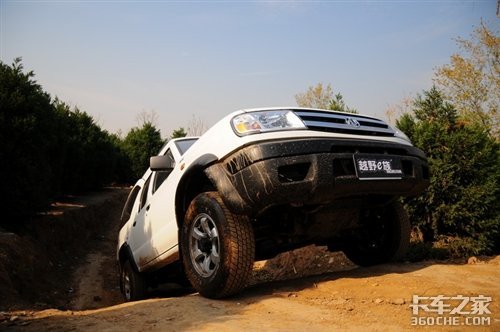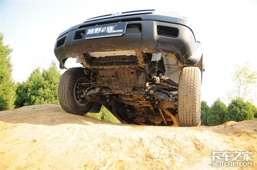 当然在2驱的主动轮悬空后它的前途也就到此结束,而四驱还是可以继续前进的。由于锐骐的轴距长达2950mm,所以它的通过角度会受到较大影响,尤其重载后会进一步降低;不过请仔细看看上面的路况,难道真的要让满载的车走这样的路?