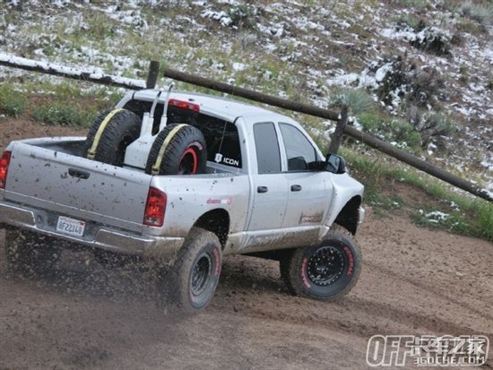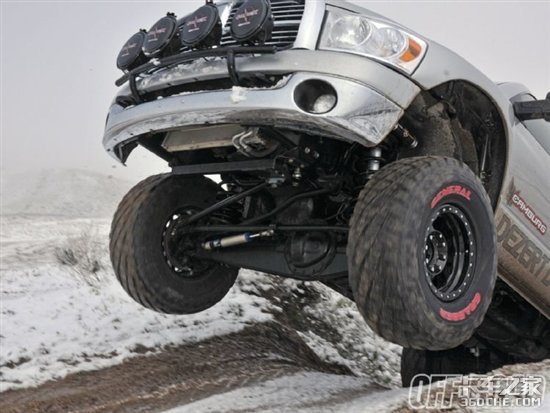 为了令这辆道奇Ram 2500能够有更出色的减震性能,车主更换了四条ICON的避震器,并且安装了Fox的转向稳定器,令复杂的路面反馈力度降至最低,也令驾驶者的双手可以更轻松些。ICON的避震器改装好后,Ram 2500的底盘也相应升高了2.5英寸,于是安装尺寸更大的轮胎会令它的越野通过能力大大提高。