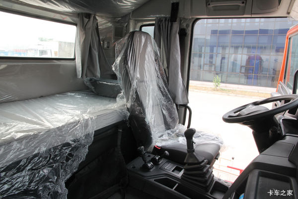 拍摄的这款380马力的前后四点气囊悬浮驾驶室,另外一台340马力的则是螺旋弹簧减震,气囊减震是作为选配装置,能够比螺旋弹簧更好的吸收路面的颠簸,减轻驾驶员的劳动强度,WABCO的减震气囊对气囊的稳定性有很好的保障。
