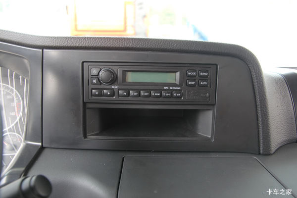 再来看看中控台吧。中间是音乐播放器,导入音乐也非常简单,比如U盘、SD存储卡、AUX输入等方式,长途驾驶的过程中很多人都喜欢放点自己喜欢的音乐,解闷、解乏。下面的是个小的储物盒,由于尺寸的问题,小编估计可以放尺寸偏小的太阳镜,当然,放些票据也是非常方便的了。