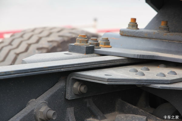 由于是重载配置,轮胎采用了三角牌12.00R20钢丝胎,前后均为多片簧、鼓式刹车,大梁为双层大梁。当然,如果是用户采用标载,可以选择真空胎、少片簧等配置,自重更轻。