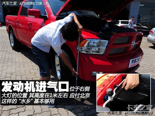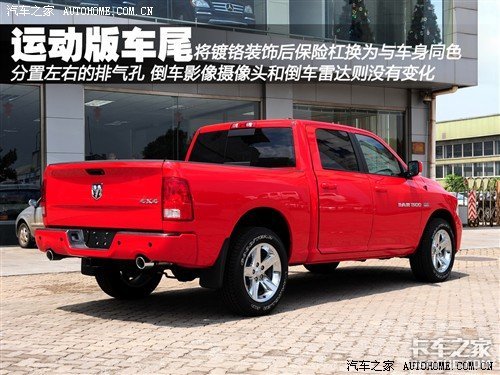 如果您每天都关注汽车之家的更新,那么您可能会记得在不久之前,我们曾经对道奇RAM1500进行过一次简单的实拍,不过今天这辆RAM1500运动版在风格上与前者有着明显的区别,没有炫目的镀铬装饰可能让它少了些明星气质,但一身扎眼的红袍同样让它魅力四射,本文中多次出现的胡编辑就对它情有独钟。(点击阅读:道奇公羊系列皮卡历史)