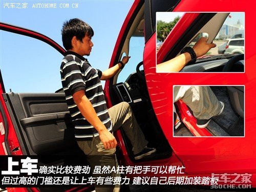 如果说斗咱还可以不用、不往上爬,那么车总是要上的吧。在这方面RAM1500也做得不是很到位,其实它距离好这个标准就差一个踏板,但它确实没有,所以你会看到活蹦乱跳的小伙子上车还要拿捏好步点,下车还要防止一脚踩空。如果你还有一些爱穿裙子的朋友,那么买车后就直接加装一副踏板吧。