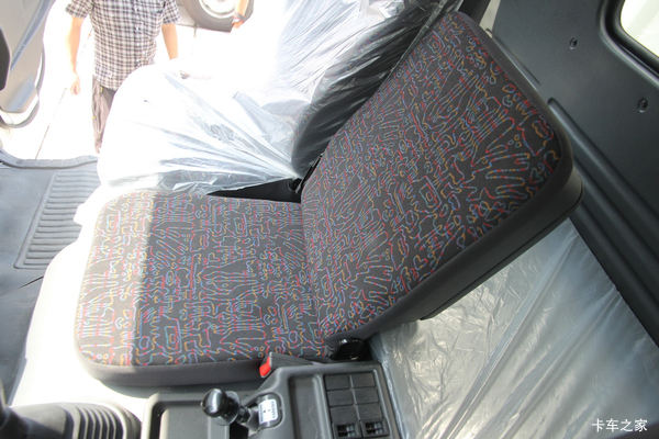 中间的副驾驶座椅可以进行翻转,不坐可以反过来放一些东西,非常实用,这个国内有很多中轻卡有这样的配置。