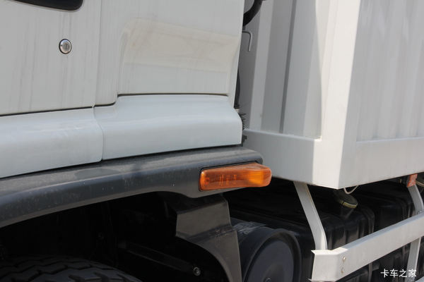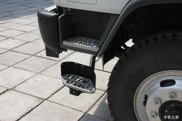 驾驶室采用二级踏板,从驾驶室下面可以看到一级踏板是在大梁下面固定了一段横梁,这样车辆的保险杠会不会太低,保证车辆的通过性,同时上下车比较方便。
