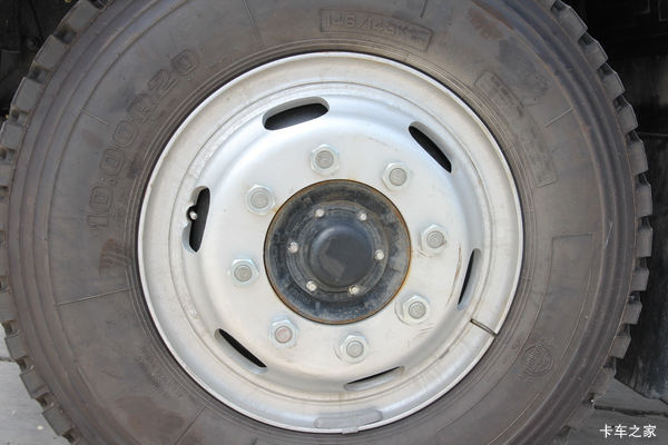 轮胎是10.00R20 钢丝胎,没有采用真空胎有点遗憾。真空胎已经成为趋势,对于中长途不超载运输,真空胎是个更好的选择。