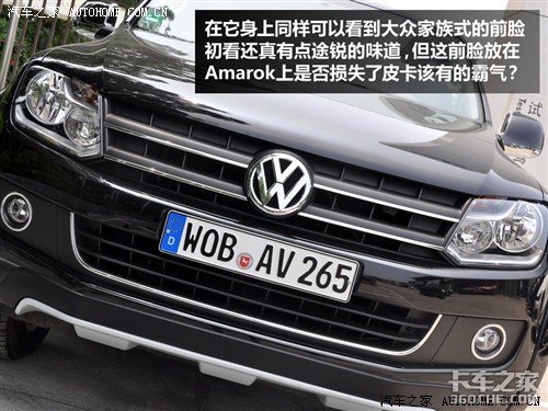可能是德国人务实的天性作祟吧?也可能皮卡不是德国汽车文化的原因吧?总之,当我第一眼看到Amarok的时候,心里面总觉得它的外观有一点不足的地方。此时,或许只有细看才能解开心里的疑惑了。先从前脸说起吧!它明显采用了大众全新的家族式脸谱,让人一眼就能看出它是大众的车型。初看还真是有点大众途锐的味道,一副霸气的模样。