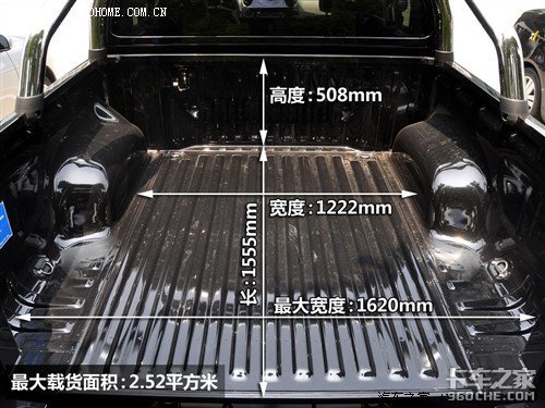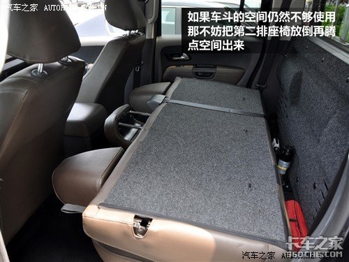虽然为了迁就后轮,车斗上有两个凸起的地方,但达到2.52平方米的最大载货面积相信已经足够你使用了。如果还觉得不足够,那不妨把第二排座椅放倒再腾出一些空间来。不过我相信你的货物数量也不至于如此庞大吧?