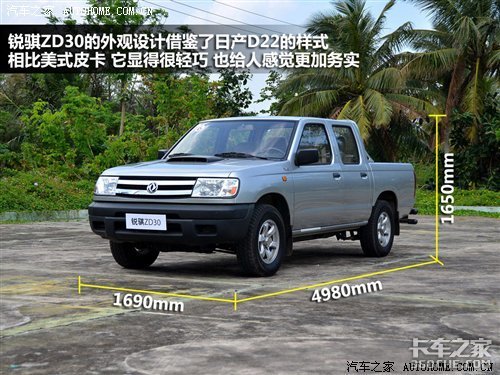 不过,当我们来到大中型城市之外的地域,发现皮卡还是有很大的市场。再加上汽车下乡政策的推进和较高的实用性,它已经受到了很大一部分消费者的青睐。在国内的皮卡车型中,郑州日产所占的比例是相当大的,从90年代开始,厂家便开始引进生产皮卡车型,在该级别中也算是元老级人物了。今天我们就为大家介绍一款郑州日产推出的一款皮卡车型——锐骐ZD30。